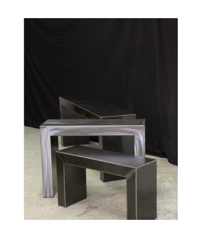 - Vous aimez la matière, Nous sélectionnons chaque tôle, ce matériau brut avec sa calamine de laminage laisse apparaître toute son authenticité. Chaque feuille d'acier est unique et le reflet de la matière brute avec ses caractéristiques propres et quelquefois importantes : oxydation plus ou moins importante, reflets bleutés, marques font partie intégrante de la matière et apporte à la pièce un véritable caractère.